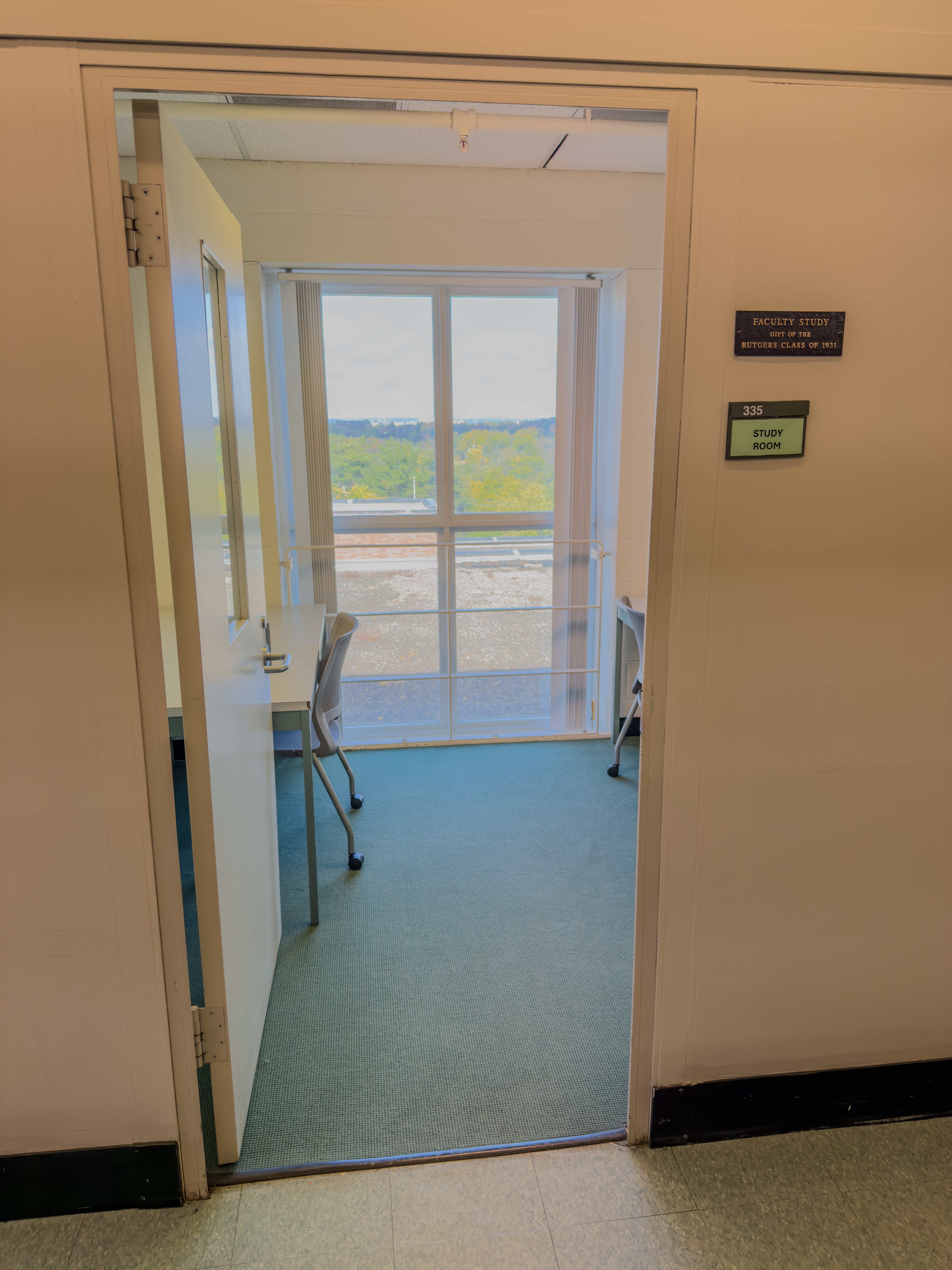 Location: Third Floor, North Wing. Study Room 335 is on the Huntington Street side of the building. See the Alexander Library North Wing Building Map for more details.